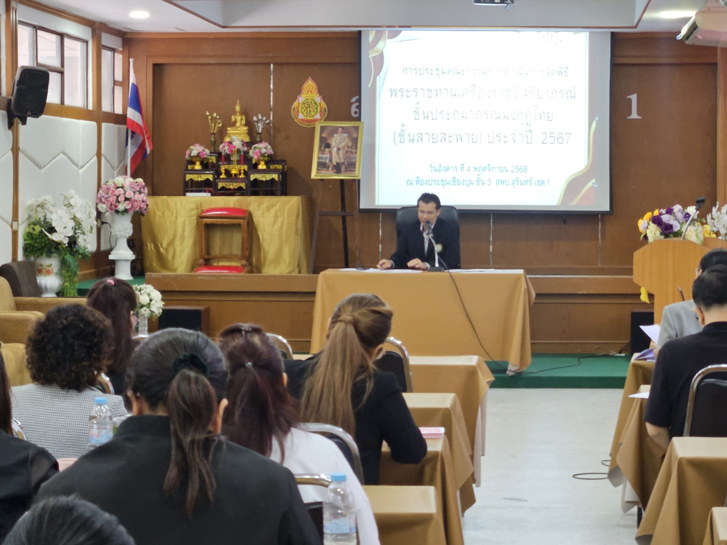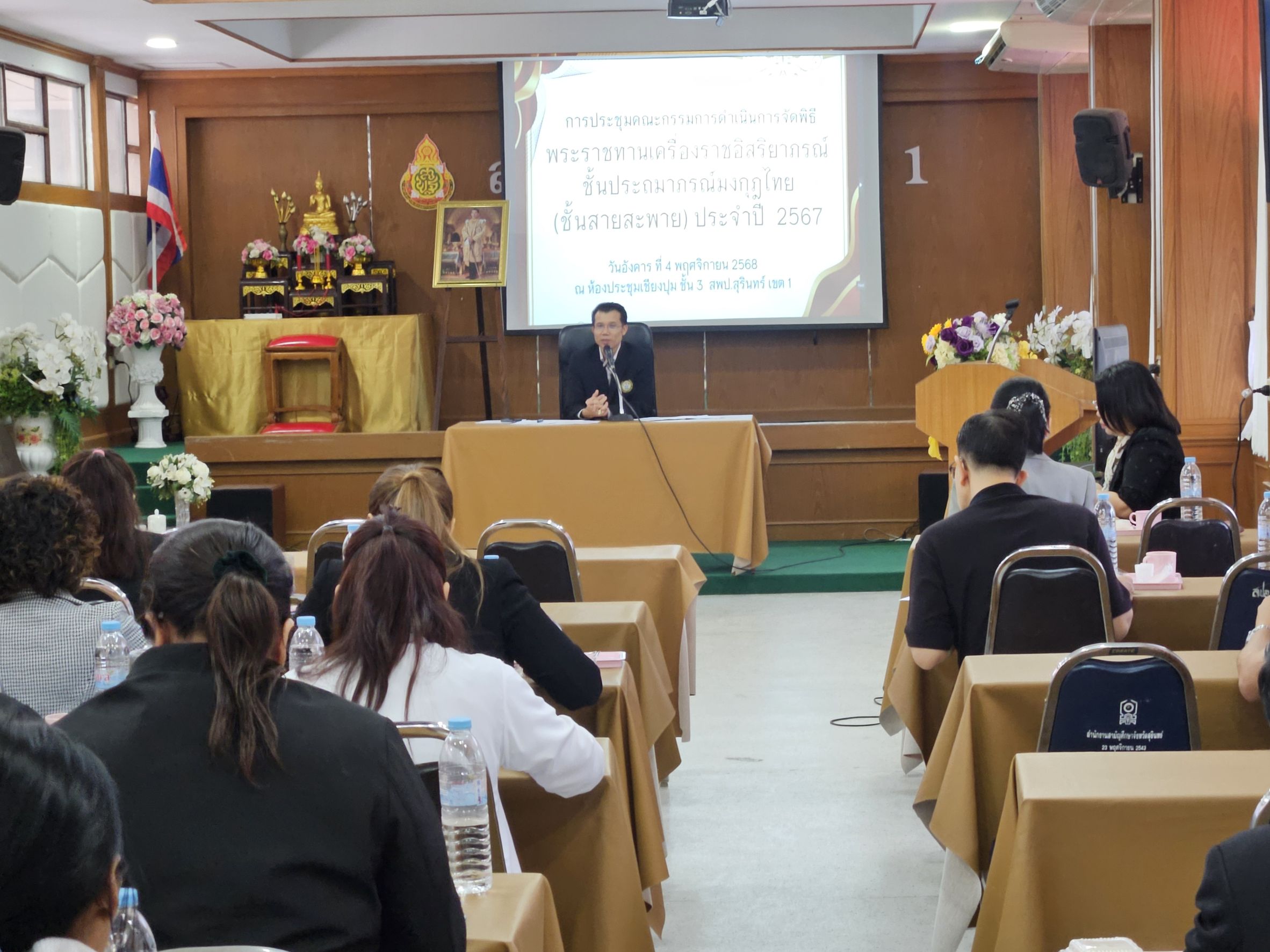 สำนักงานเขตพื้นที่การศึกษาประถมศึกษาสุรินทร์ เขต 1 โดยกลุ่มบริหารงานบุคคล สำนักงานเขตพื้นที่การศึกษาประถมศึกษาสุรินทร์ เขต 1 ประชุมคณะกรรมการดำเนินการจัดพิธีรับพระราชทานเครื่องราชอิสริยาภรณ์ชั้นประถมาภรณ์มงกุฎไทย(ชั้นสายสะพาย) ประจำปี 2567 ณ ห้องประชุมเชียงปุม ชั้น 3 สำนักงานเขตพื้นที่การศึกษาประถมศึกษาสุรินทร์ เขต 1