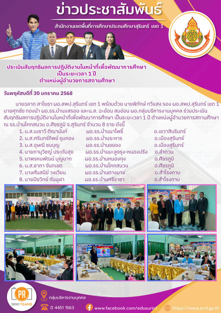 admin 31 มกราคม 2025 ข่าวประชาสัมพันธ์ Post Views: 489 แนะแนวเรื่อง Previous Previous post: นายฉลาด สาโยธา ผอ.สพป.สุรินทร์ เขต 1 เข้าประชุมผู้อำนวยการสำนักงานเขตพื้นที่การศึกษาทั่วประเทศ ผ่านระบบ Video Conference ครั้งที่ 1/2568Next Next post: ประเมินสัมฤทธิผลการปฏิบัติงานผู้อำนวยการสถานศึกษา