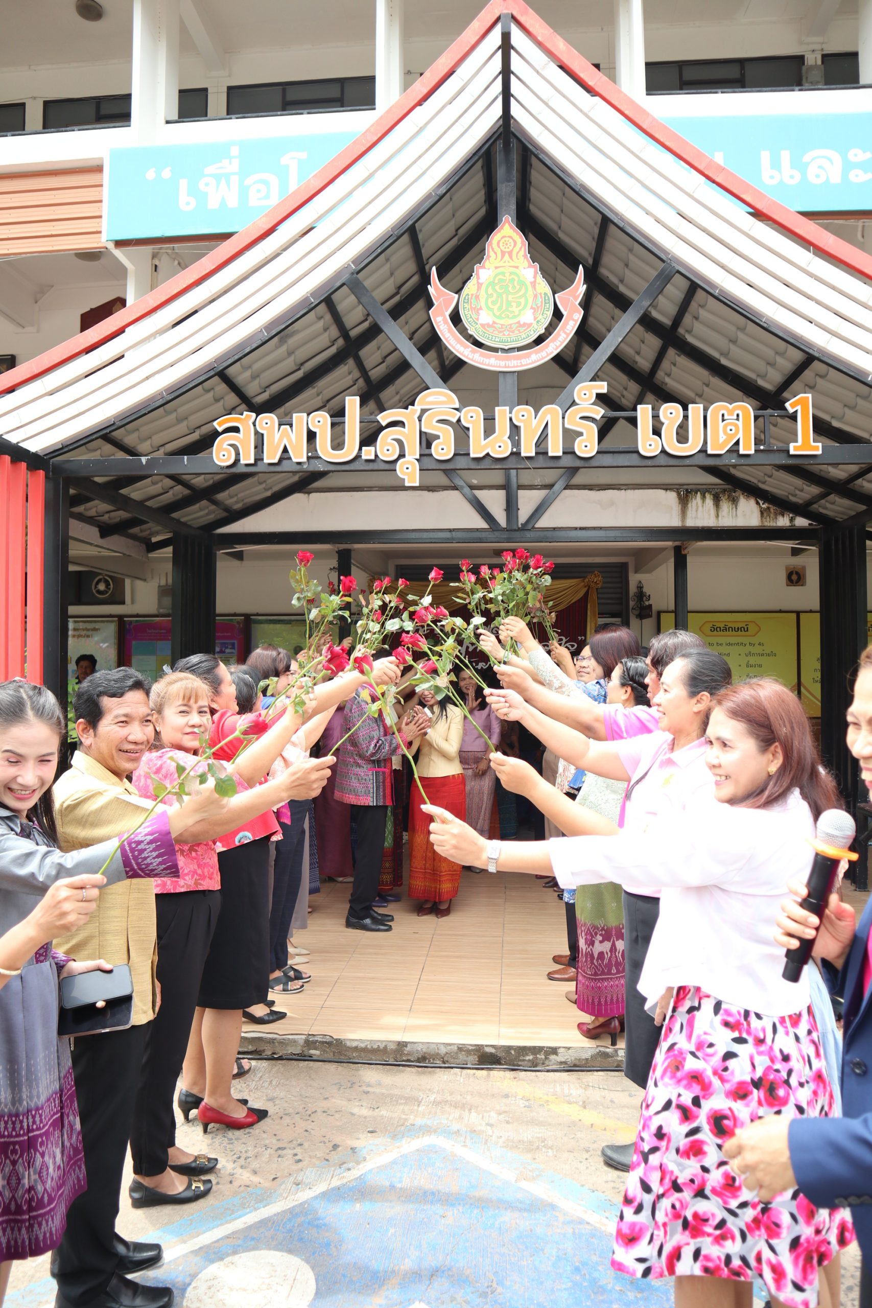 นายฉลาด สาโยธา ผู้อำนวยการสำนักงานเขตพื้นที่การศึกษาประถมศึกษาสุรินทร์ เขต 1 พร้อมด้วยผู้เกษียณอายุราชการ ร่วมอำลา เนื่องในโอกาสเกษียณอายุราชการและปฏิบัติหน้าที่ราชการวันสุดท้าย ณ สำนักงานเขตพื้นที่การศึกษาประถมศึกษาสุรินทร์ เขต 1