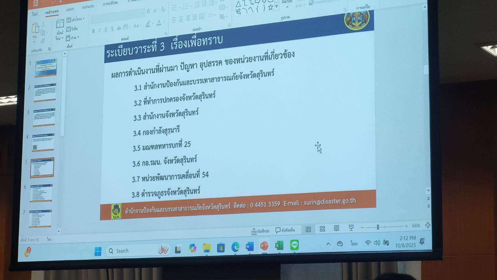 นายนาวิน ยวนจิตปิยะ รองผู้อำนวยการสำนักงานเขตพื้นที่การศึกษาประถมศึกษาสุรินทร์ เขต 1 รักษาราชการแทน ผู้อำนวยการสำนักงานเขตพื้นที่การศึกษาประถมศึกษาสุรินทร์ เขต 1 มอบหมายให้ นางพนารัตน์ หาญมานพ รองผู้อำนวยการสำนักงานเขตพื้นที่การศึกษาประถมศึกษาพระนครศรีอยุธยา เขต 1 ช่วยราชการสำนักงานเขตพื้นที่การศึกษาประถมศึกษา สุรินทร์ เขต 1 ร่วมประชุมศูนย์บัญชาการเหตุการณ์ การอพยพประชาชน กรณีภัยทางอากาศ จ.สุรินทร์ ครั้งที่ 2 /2568 ณ ห้องประชุมข้าวสารหอม ชั้น 2 ศาลากลางจังหวัดสุรินทร์