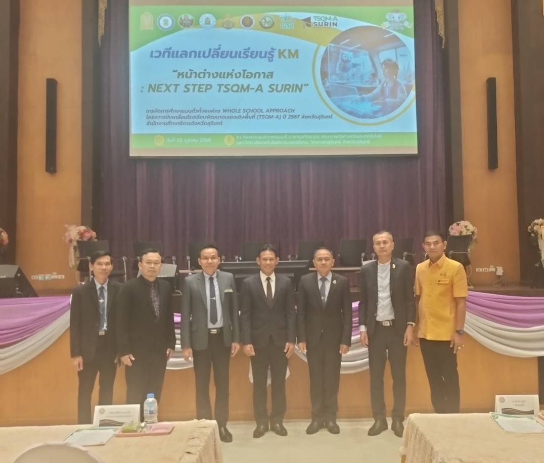 นายยาวิน ยวนจิตปิยะ รองผู้อำนวยการสำนักงานเขตพื้นที่การศึกษาประถมศึกษาสุรินทร์ เขต 1 รักษาการแทนราชการแทน ผู้อำนวยการสำนักงานเขตพื้นที่การศึกษาประถมศึกษาสุรินทร์ เขต 1 พร้อมด้วยศึกษานิเทศก์ ผู้บริหารสถานศึกษา ครูและบุคคลกรทางการศึกษา จำนวน 30 โรงเรียน ร่วมแลกเปลี่ยนเรียนรู้ (KM) การจัดการศึกษาแบบทั่วทั้งองค์กร (Whole School Approa