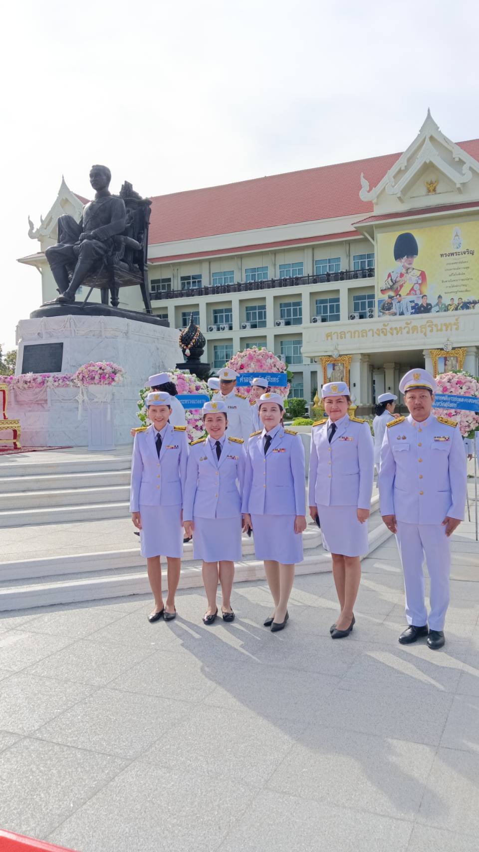 นายนาวิน ยวนจิตปิยะ รองผู้อำนวยการสำนักงานเขตพื้นที่การศึกษาประถมศึกษาสุรินทร์ เขต 1 รักษาราชการแทน ผู้อำนวยการสำนักงานเขตพื้นที่การศึกษาประถมศึกษาสุรินทร์ เขต 1 มอบหมายบุคลากรกลุ่มบริหารงานการเงินและสินทรัพย์ร่วมงานพิธีวันปิยมหาราช และวางพวงมาลาถวายราชสักการะหน้าพระบรมราชานุสาวรีย์ พระบาทสมเด็จพระจุลจอมเกล้าเจ้าอยู่หัว หน้าอาคารศูนย์ราชการจังหวัดสุรินทร์
