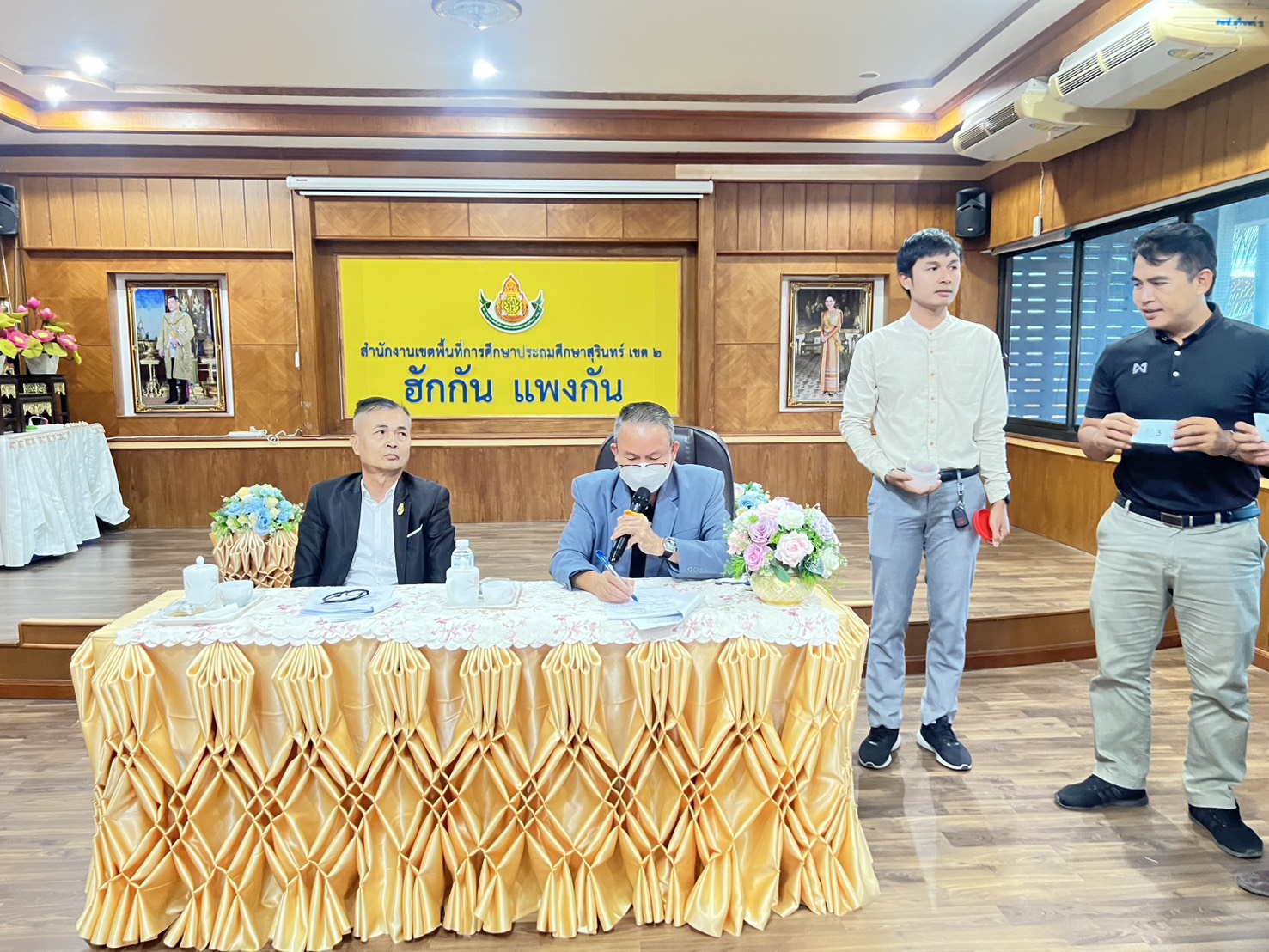 นายนาวิน ยวนจิตปิยะ รองผู้อำนวยการสำนักงานเขตพื้นที่การศึกษาประถมศึกษาสุรินทร์ เขต 1 รักษาราชการแทน ผู้อำนวยการสำนักงานเขตพื้นที่การศึกษาประถมศึกษาสุรินทร์ เขต 1 พร้อมด้วยบุคลากร ร่วมประชุมการดำเนินโครงการประชุมเชิงปฏิบัติการเพื่อพัฒนาศักยภาพ บุคลิกภาพ และประสิทธิภาพผู้บริหารสถานศึกษาและบุคลากรทางการศึกษา (การแข่งขันกีฬา “เสมาสามัคคี