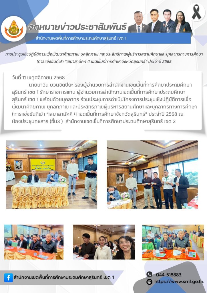 ปูนปั้น แก้วสมุทร์ 11 พฤศจิกายน 2025 ข่าวประชาสัมพันธ์ Post Views: 125 แนะแนวเรื่อง Previous Previous post: การดำเนินโครงการประชุมเชิงปฏิบัติการเพื่อพัฒนาศักยภาพ บุคลิกภาพ และประสิทธิภาพผู้บริหารสถานศึกษาและบุคลากรทางการศึกษา (การแข่งขันกีฬา “เสมาสามัคคี 4 เขตพื้นที่การศึกษาจังหวัดสุรินทร์” ประจำปี 2568)Next Next post: การประชุมการขับเคลื่อนโรงเรียนขยายโอกาสทางการศึกษา ปีงบประมาณ พ.ศ 2569