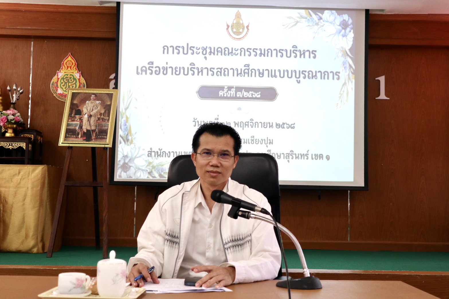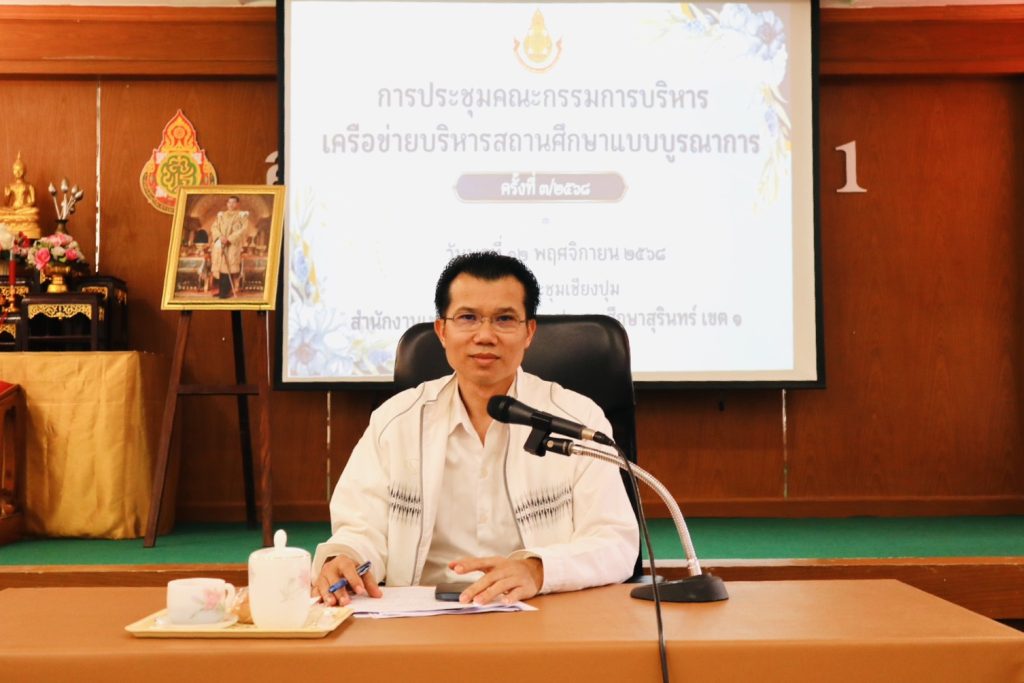 นายนาวิน ยวนจิตปิยะ รองผู้อำนวยการสำนักงานเขตพื้นที่การศึกษาประถมศึกษาสุรินทร์ เขต 1 รักษาราชการแทน ผู้อำนวยการสำนักงานเขตพื้นที่การศึกษาประถมศึกษาสุรินทร์ เขต 1 มอบหมายให้ นายพิทักษ์ ทวีแสง รองผู้อำนวยการสำนักงานเขตพื้นที่การศึกษาประถมศึกษาสุรินทร์ เขต 1 เป็นประธานในการประชุมคณะกรรมการบริหารเครือข่ายบริหารสถานศึกษาแบบบูรณาการ สำนักงานเขตพื้นที่การศึกษาประถมศึกษาสุรินทร์ เขต 1 ครั้งที่ 3/2568 ณ ห้องประชุมเชียงปุมชั้น 3