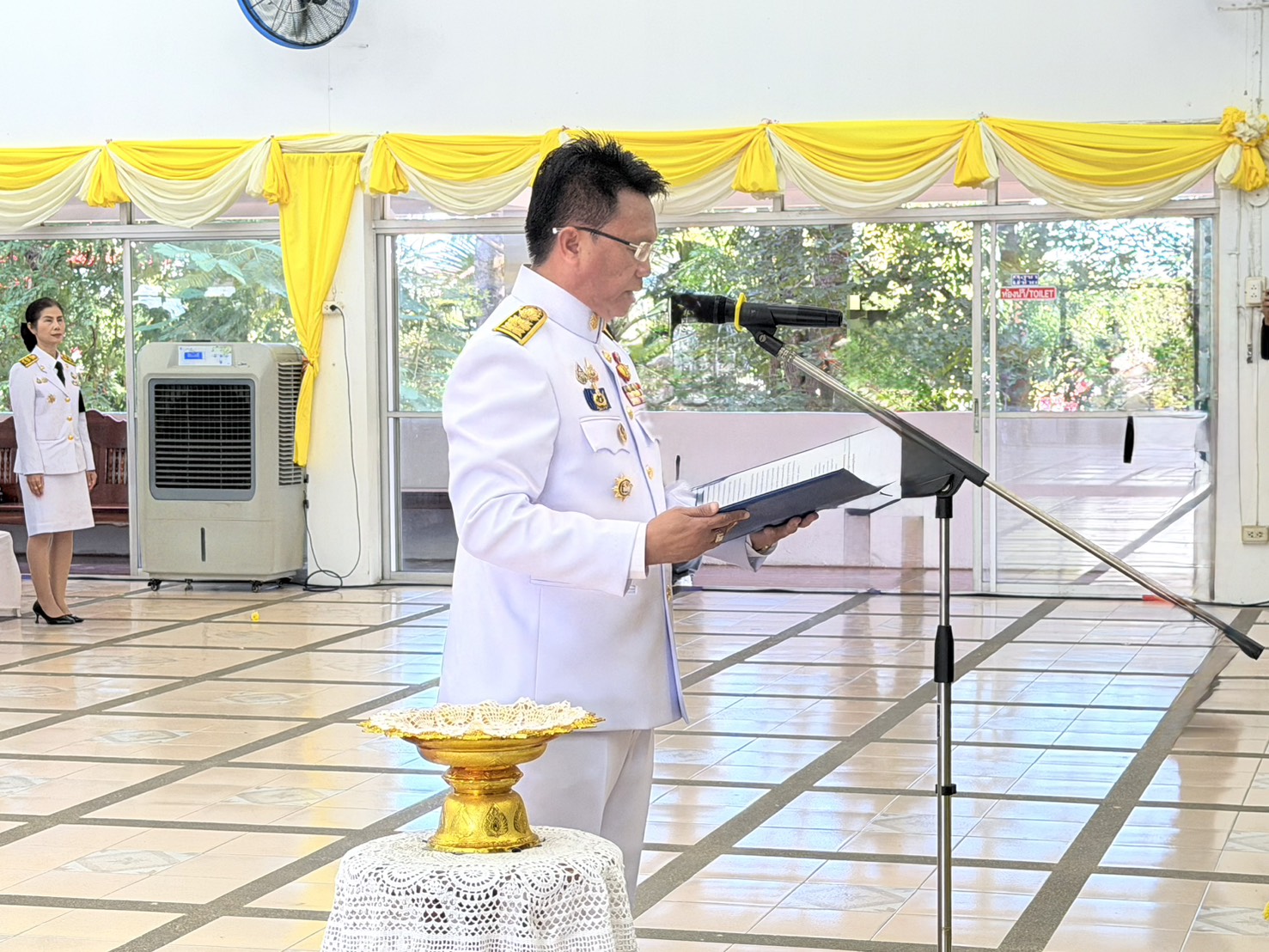 ร่วมพิธีวางพานพุ่มดอกไม้สดเนื่องในวันพระบิดาแห่งฝนหลวง ประจำปี 2568 ณ หอประชุมสุรินทร์วัฒนา วิทยาลัยอาชีวศึกษาสุรินทร์ตำบลในเมือง อำเภอเมืองสุรินทร์ จังหวัดสุรินทร์
