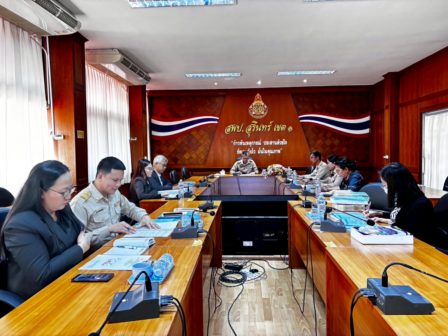นายทวีสิทธิ์ มั่นจิต ผู้อำนวยการสำนักงานเขตพื้นที่การศึกษาประถมศึกษาสุรินทร์ เขต 1 มอบหมายให้นายนาวิน ยวยจิตปิยะ รองผู้อำนวยการสำนักงานเขตพื้นที่การศึกษาประถมศึกษาสุรินทร์ เขต 1 เป็นประธานการประชุมสรุปผลการประเมินนักเรียนและสถานศึกษา เพื่อรับรางวัลพระราชทาน ระดับการศึกษาขั้นพื้นฐาน ประจำปีการศึกษา 2568 ระดับจังหวัดสุรินทร์ ณ ห้องประชุมกันเกรา สพป.สร.1