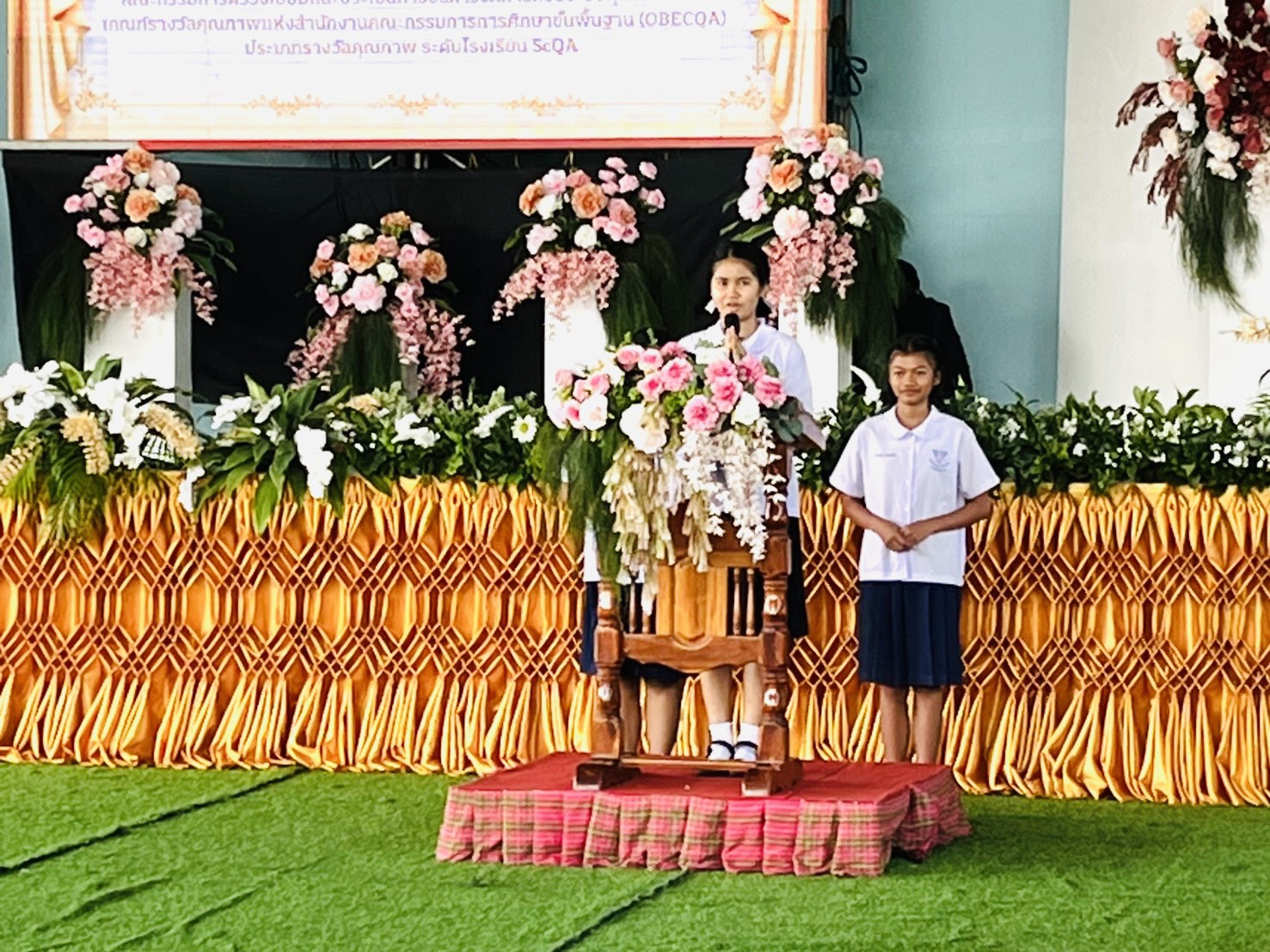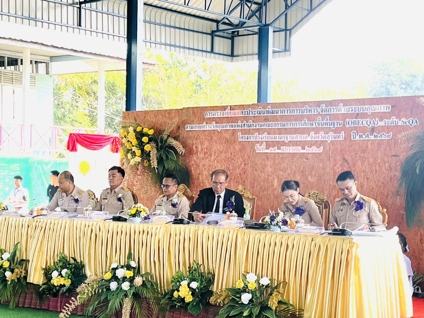 นายทวีสิทธิ์ มั่นจิต ผู้อำนวยการสำนักงานเขตพื้นที่การศึกษาประถมศึกษาสุรินทร์ เขต 1 ร่วมต้อนรับและกล่าวคำนิยม ในการตรวจเยี่ยมและประเมินพัฒนาการการบริหารจัดการด้วยระบบคุณภาพ ตามเกณฑ์รางวัลคุณภาพแห่งสำนักงานคณะกรรมการการศึกษาขั้นพื้นฐาน(OBECQA) ระดับ ScQA ณ โรงเรียนอนุบาลสำโรงทาบ(บริคุตต์วิทยาคุณ) อำเภอสำโรงทาบ จังหวัดสุรินทร์