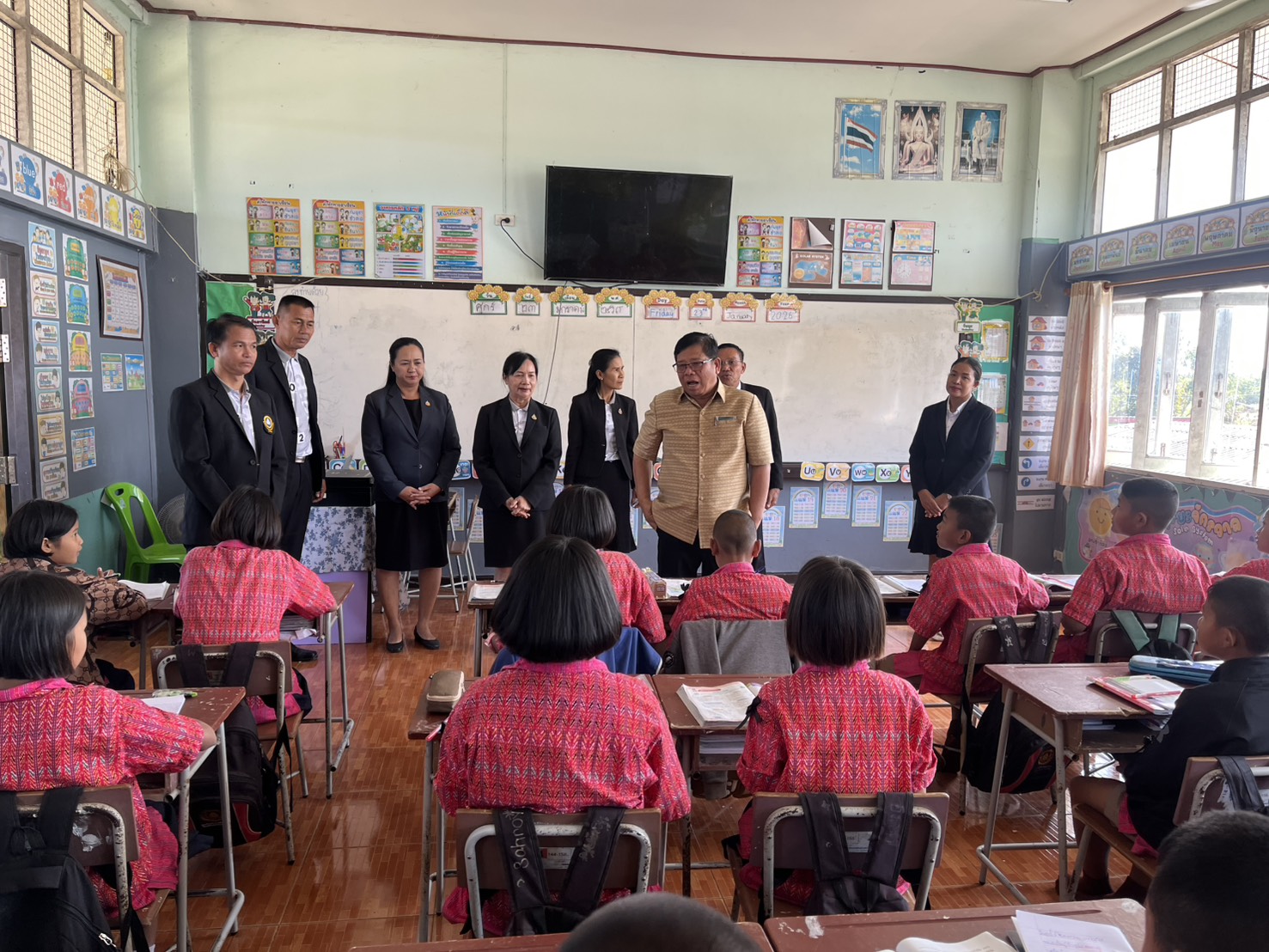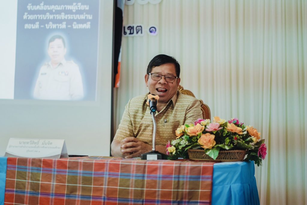 นายทวีสิทธิ์ มั่นจิต ผู้อำนวยการสำนักงานเขตพื้นที่การศึกษาประถมศึกษาสุรินทร์ เขต 1 มอบนโยบายและนวทางการจัดการศึกษาแก่ผู้บริหารสถานศึกษา และตรวจเยี่ยมให้กำลังใจผู้บริหาร ครูและนักเรียนในเครือข่ายบริหารสถานศึกษาแบบบูรณาการจอมพระ 2 ณ โรงเรียนบ้านขามศึกษาคาร ตำบลบุแกรง อำเภอจอมพระ จังหวัดสุรินทร์