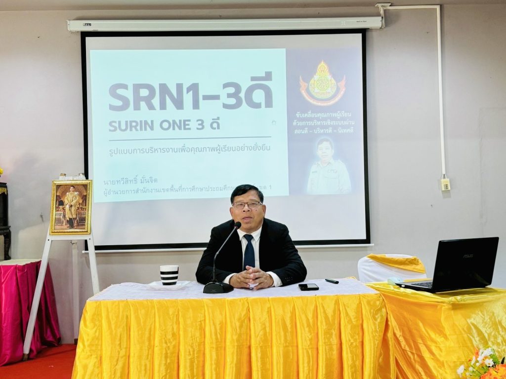 นายทวีสิทธิ์ มั่นจิต ผู้อำนวยการสำนักงานเขตพื้นที่การศึกษาประถมศึกษาสุรินทร์ เขต 1 มอบนโยบายและแนวทางการจัดการศึกษาแก่ผู้บริหารสถานศึกษา และตรวจเยี่ยมให้กำลังใจผู้บริหาร ครูและนักเรียนในเครือข่ายบริหารสถานศึกษาแบบบูรณาการศีขรภูมิ 1 ณ โรงเรียนบ้านระเวียง อำเภอศีขรภูมิ จังหวัดสุรินทร์