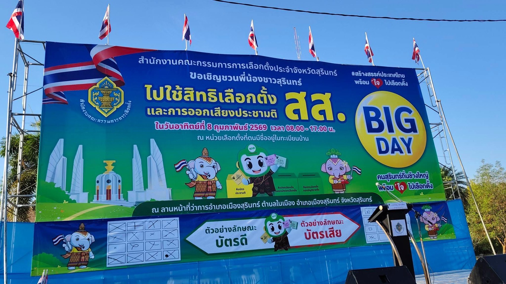 นายทวีสิทธิ์ มั่นจิต ผู้อำนวยการสำนักงานเขตพื้นที่การศึกษาประถมศึกษาสุรินทร์ เขต 1 มอบหมายให้ นายศิริศาสตร์ ส่องแสง รองผู้อำนวยการสำนักงานเขตพื้นที่การศึกษาประถมศึกษาสุรินทร์ เขต 1 เข้าร่วมกิจกรรมรณรงค์ประชาสัมพันธ์ การเลือกตั้งสมาชิกสภาผู้แทนราษฎรและการออกเสียงประชามติ (Big Day) ณ ลานที่ว่าการอำเภอเมืองสุรินทร์ ตำบลในเมือง อำเภอเมืองสุรินทร์ จังหวัดสุรินทร์